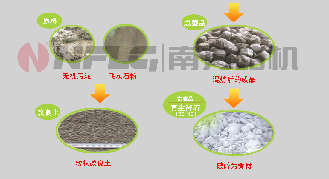 南方路機創(chuàng)新性的余泥造粒再生裝備及工藝,是利用固化技術,讓建筑余泥、石粉等經(jīng)過設備處理之后成為粒狀改良土和再生骨料的技術工藝。