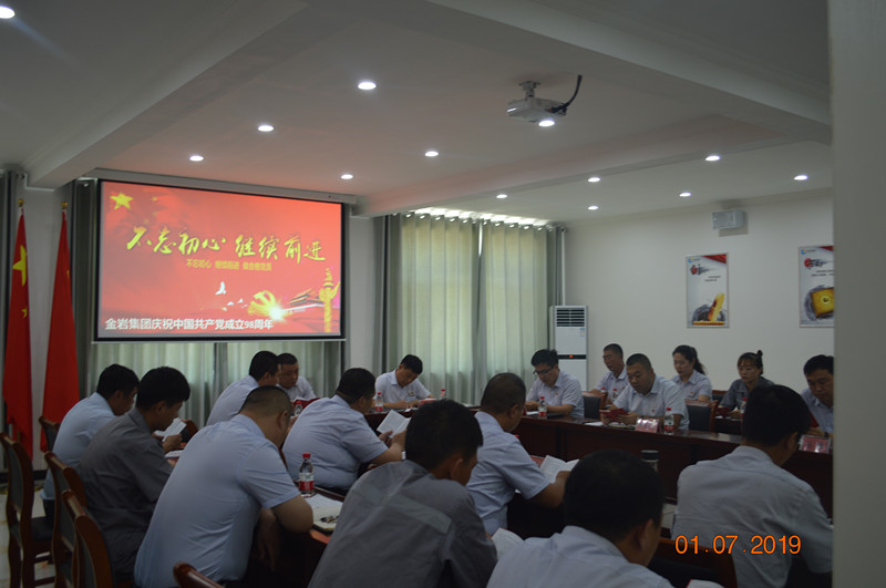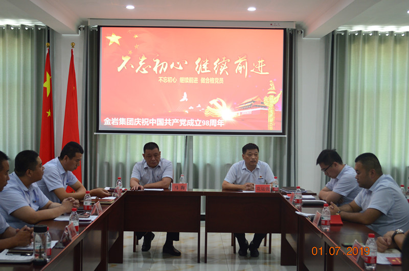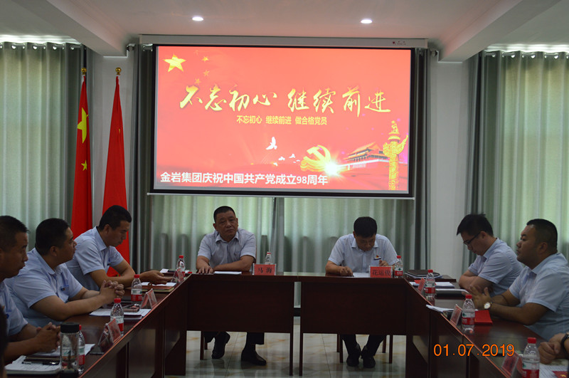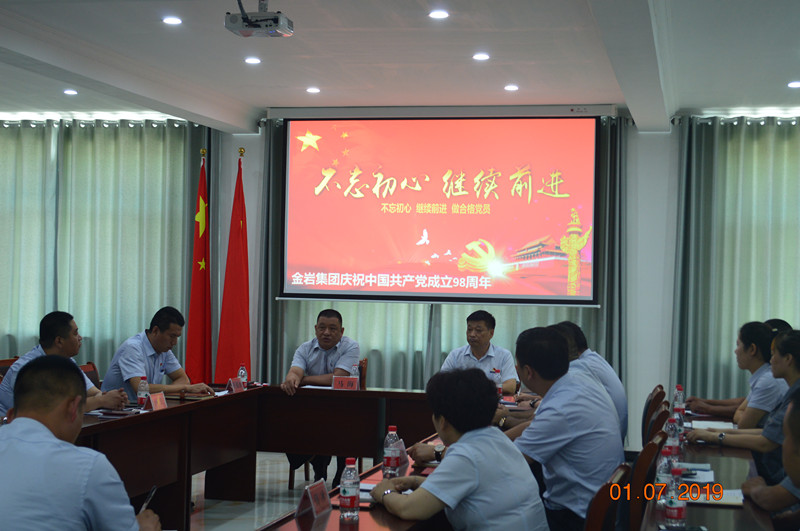 金巖集團(tuán)黨支部于2019年7月1日黨的生日組織全體黨員及入黨積極分子并邀約集團(tuán)各級(jí)領(lǐng)導(dǎo)在公司會(huì)議室開(kāi)展以“不忘初心、牢記使命”為主題的學(xué)習(xí)座談會(huì)。
