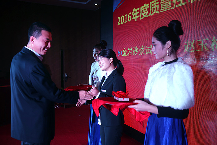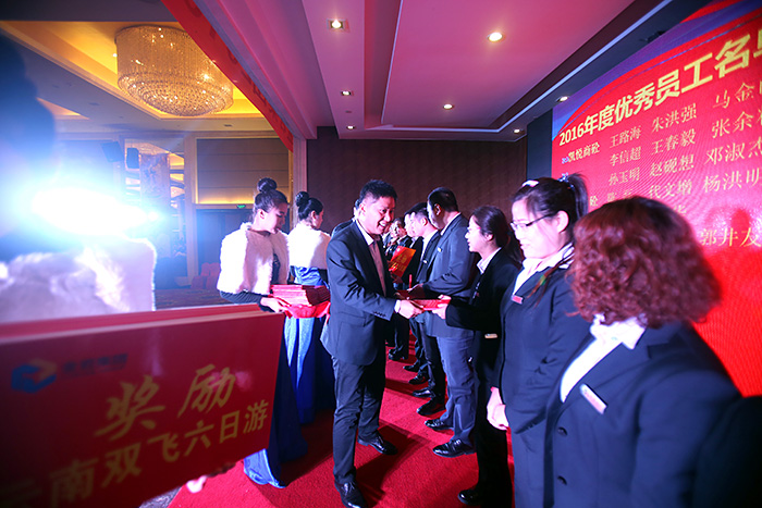 公司領(lǐng)導感謝全體員工一年來的辛苦付出,并頒發(fā)了年度杰出經(jīng)理人、銷售精英、年度最佳團隊、質(zhì)量控制先鋒以及年度員工代表和優(yōu)秀員工等獎項,表彰了在2016年工作中表現(xiàn)優(yōu)異的先進個人和集體。